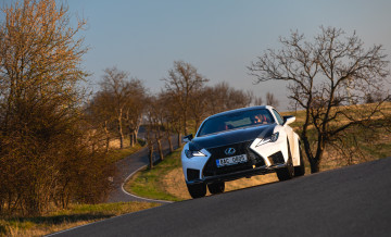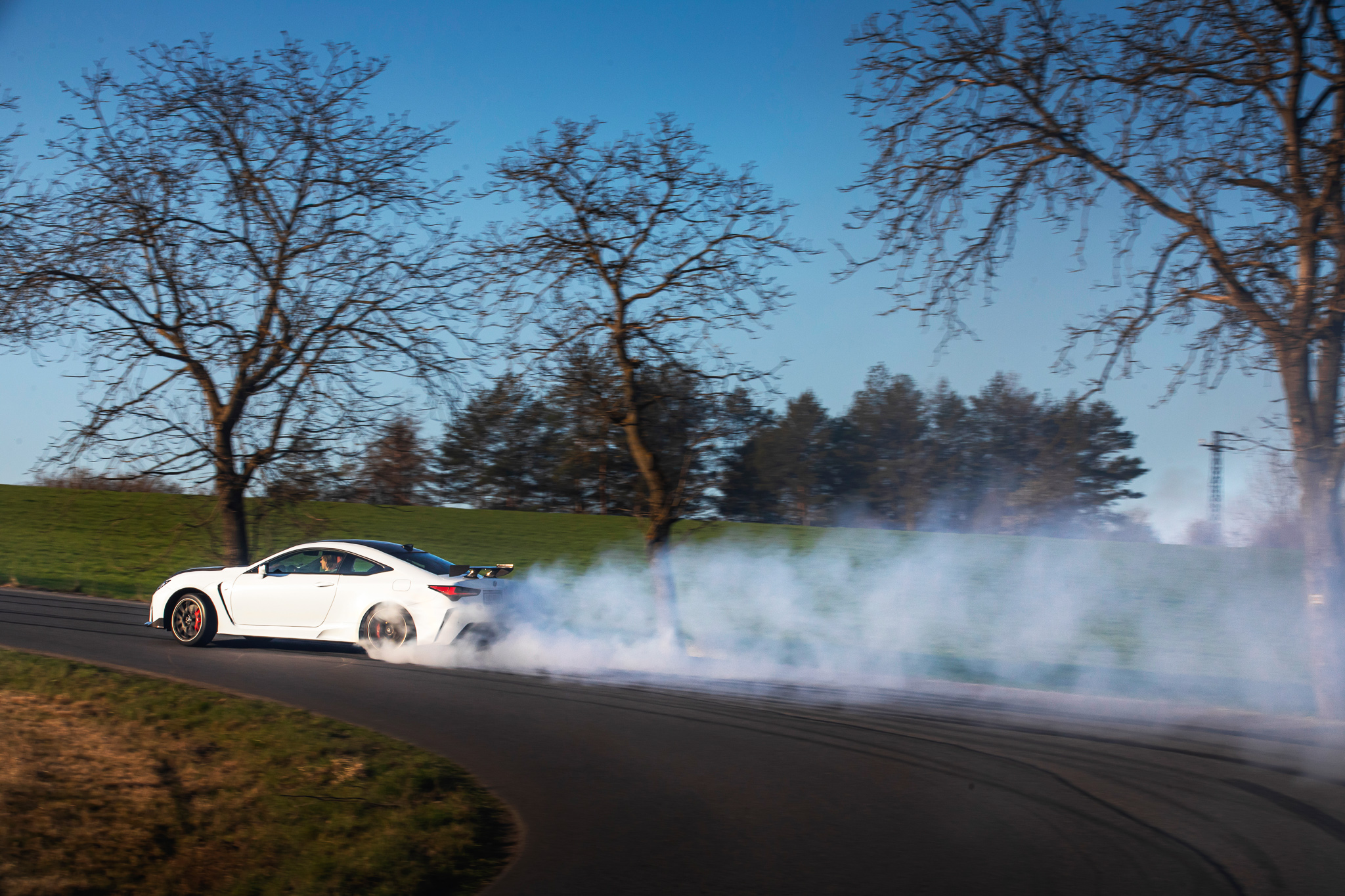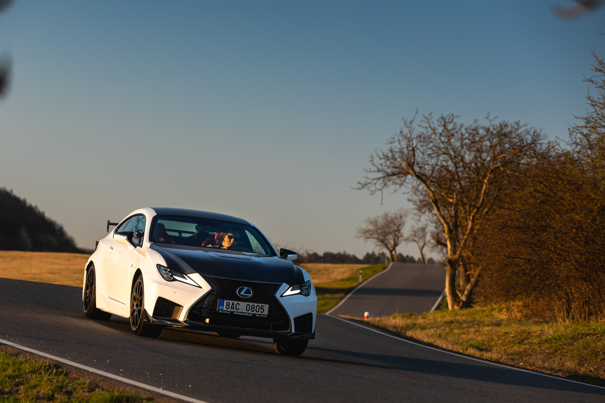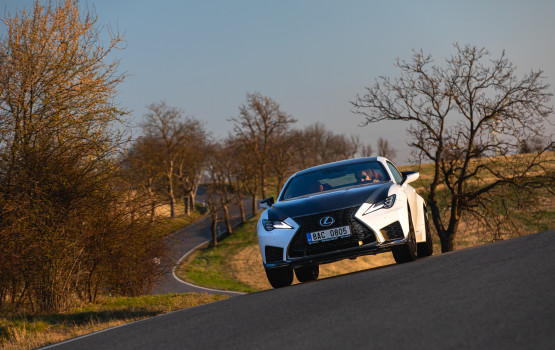 Lexus při rozjezdu zavlní zadkem a já odřazuji na dvojku. Pádla řazení osmistupňové převodovky vydávají rozeznatelné klapnutí a otáčky motoru už opět letí k 7100/min, kde je vrchol výkonu. Na tváři dravý úsměv, ruce pevně na dokonalém kulatém volantu. První zatáčky odhalují, že speciálně vyvinuté pneu Michelin Pilot Sport 4 S (mají jedinečný dezén, směs i profil) potřebují nejdřív zahřát. Když jsou studené, divoce klouzají, takže záď při svém tanci neustále maluje stopy na rozpálený asfalt. I tak je jízda zážitkem plným dravosti, hrubosti, ale i citu od řízení a předních kol. Ruce se dávno potí, možná nasadím rukavice. Zvykám si na vysokou reaktivitu, tuhost i agilitu drsného kupé. O desítky ostrých kilometrů dál, kdesi v horách na severu, už vše začíná fungovat – horké pneumatiky se lepí k asfaltu, cit narůstá a motor radostně skučí mezi lesy. Hrubší asfalt je ideálním hřištěm, na výjezdech záď lehce vybočuje, ovšem po nedotáčivosti v průběhu ani stopy, čemuž taktéž pomáhají pneumatiky. Rychlé řízení umožňuje krájení asfaltu s přesností na milimetry, tedy pokud to nepřeženu a nerozevlaju záď. Rychlé kontra piluji se zarputilostí, v touze sladit se se strojem v dokonalý pár.
