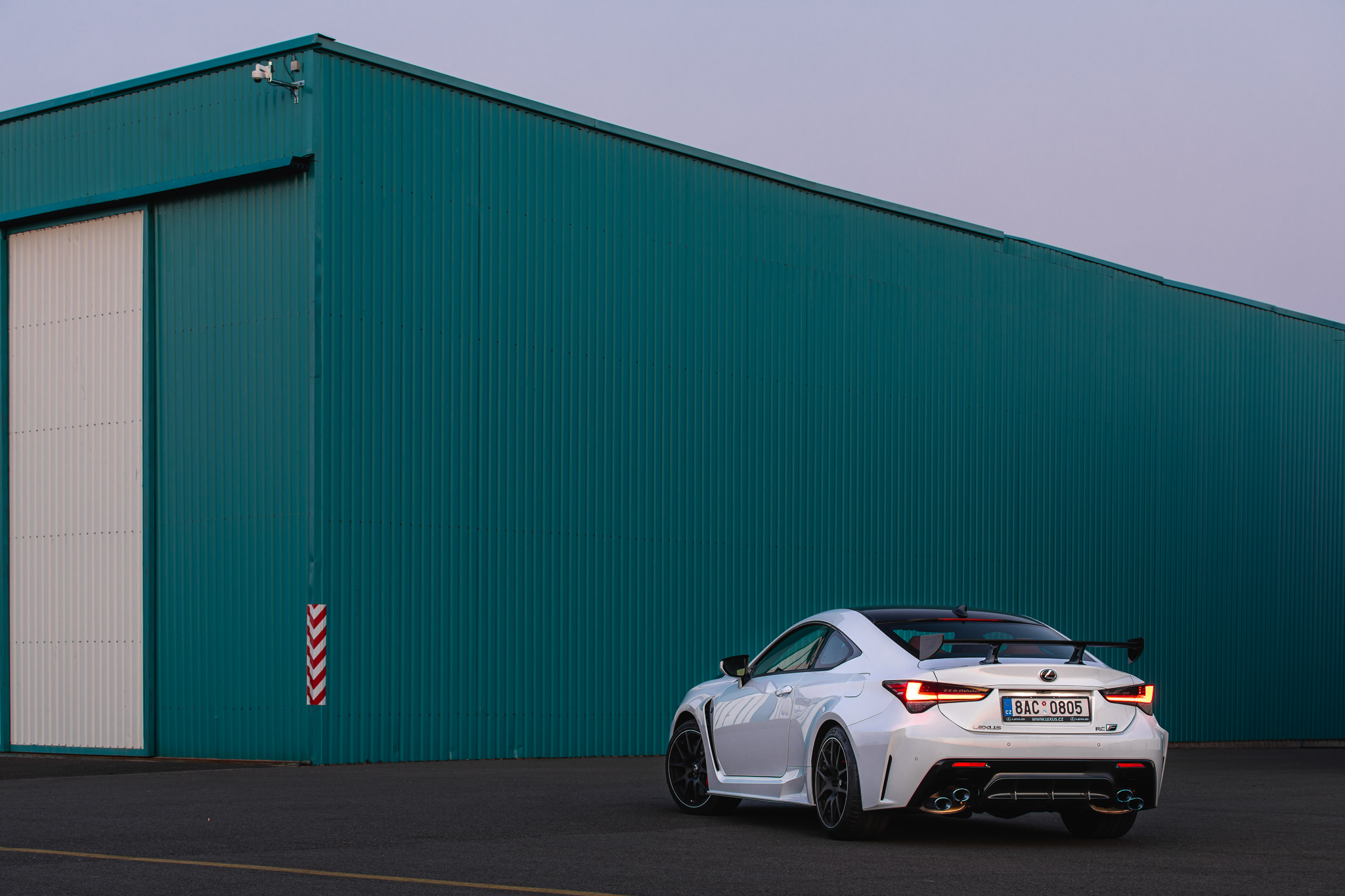 Díky domácímu zastoupení Lexusu se nám podařilo sáhnout na první nové RC F u nás, a navíc ve speciální edici Track Edition. Proti „běžnému“ RC F (či edici Carbon) jí rozeznáte snadno hlavně podle karbonových prvků: spojleru vpředu, kapoty, střechy, pevnému zadnímu křídlu a difuzoru, obepnutém čtyřmi koncovkami výfuku, který je celý z titanu, což je u sériového vozu skutečná rarita. Exkluzivní je dokonalá bílá barva Ultra, druhou možností edice je pak matně šedá Nebula.