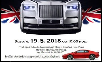 V přírodním parku dubečské panské zahrady se i letos bude konat již pátý ročník setkání majitelů a příznivců značky Rolls-Royce. Všechny čeká nejen jedinečná podívaná, ale i bohatý doprovodný program (včetně off-road jízd a projížděk v historickém autobusu Škoda 706 RTO po okolí) pro celou rodinu. Těšit se můžete například na sportovní vystoupení Slack Show, seskok parašutistů s britskou vlajkou, vystoupení motocyklového kaskadéra Lukáše Petráčka či obrázkový kvíz pro znalce automobilů. Výstavu britských klenotů doplní výstava vozů značek Ferrari, Maserati, Jaguar, Lotus a Mercedes a výstavy vozů BMW M Motorsport a Jaguar.